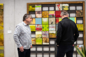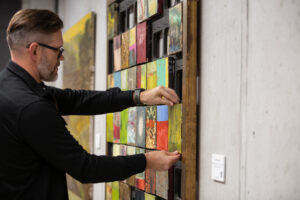 Visuma salikšana pa maziem gabaliņiem izpaudusies arī praksē – izstādes atklāšanas gaitā apmeklētājiem bija iespēja pašiem izlemt, kādā secībā izvietot kolāžas veida kompozīciju, kas sastāv no vairākiem mākslinieka mazformāta gleznojumiem. Kā stāsta mākslinieks, videi, kurā darbi tiek izvietoti, ir milzīga nozīme. “Maniem darbiem meklēju īstno sienu, īsto telpu, kurā tie dzīvo “uz pilnu klapi” – plašu, gaišu betona sienu. Tā ir savstarpēja atkarība vienam no otra – gleznai un videi. Viena bez otras nevar,” viņš stāsta. “Visiem darbiem vietas muzejā nepietiek, tāpēc mēs radām muzeju tur, kur pašiem patīk,” viņš stāsta par savu darbu izvietojumu ZEISS BIROJOS.